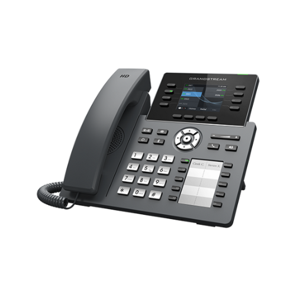 - هاتف جراند استريم GRP2634 هو هاتف IP احترافي مصمم لتلبية احتياجات الشركات الكبيرة والمتوسطة التي تتطلب إدارة مكالمات متعددة وأداء عالي. يدعم الهاتف 8 خطوط SIP، مما يسمح بإدارة المكالمات بفعالية وسهولة. يتميز الهاتف بشاشة LCD ملونة بحجم 4.3 بوصة، تعرض المكالمات والمعلومات بوضوح تام.
